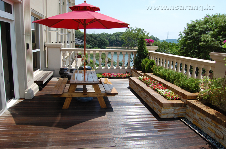 용인 고매동에 위치한 메종블루아 1층 테라스 조경사진 입니다..