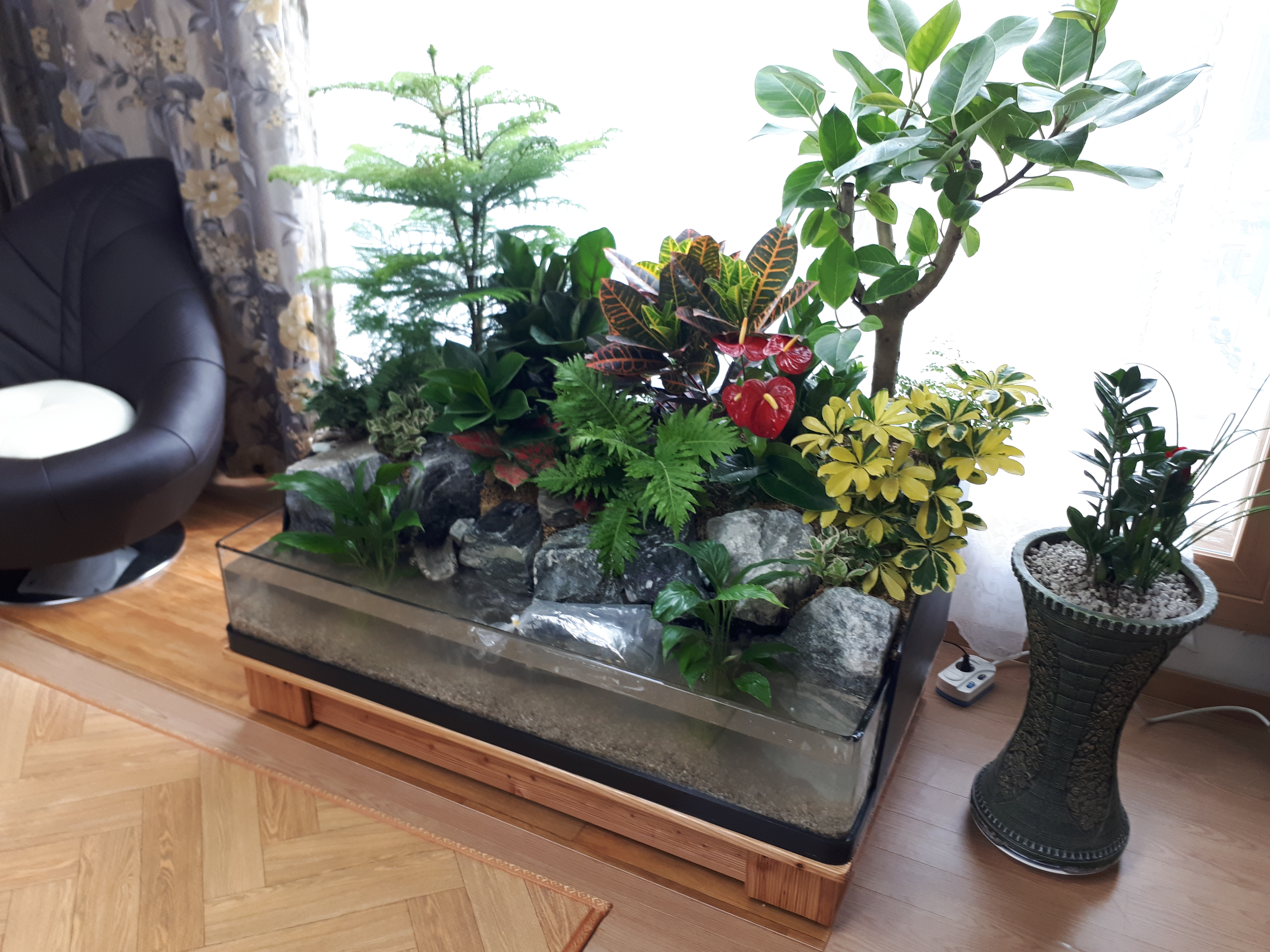 아파트 거실에 한 조경입니다.