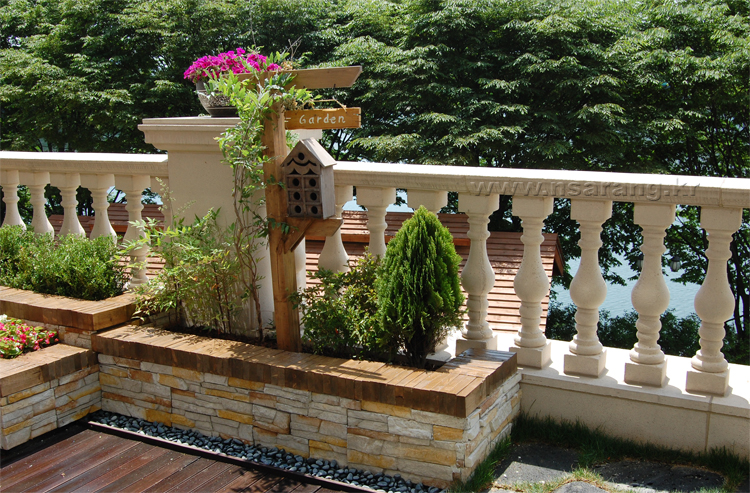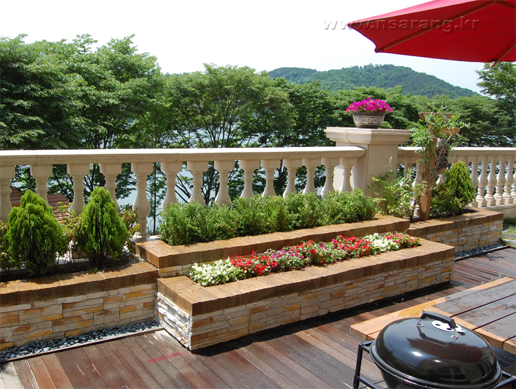 용인 고매동에 위치한 메종블루아 1층 테라스 조경사진 입니다..
