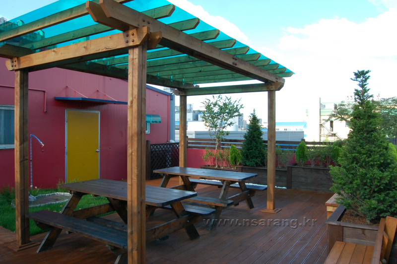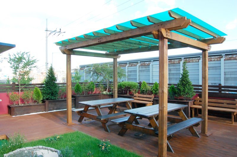 인천 효성동에 위치한 광고티슈전문업체 TNB 옥상입니다.TNB 사장님께서 공장지대라 직원분들 쉬는시간이나 식사후에 편히 쉴 휴게공간이 없어 고민하던차에넓은 공간은 아니지만 옥상공간을 활용하여 직원분들에게 옥외 휴게공간을 선물하셨습니다.