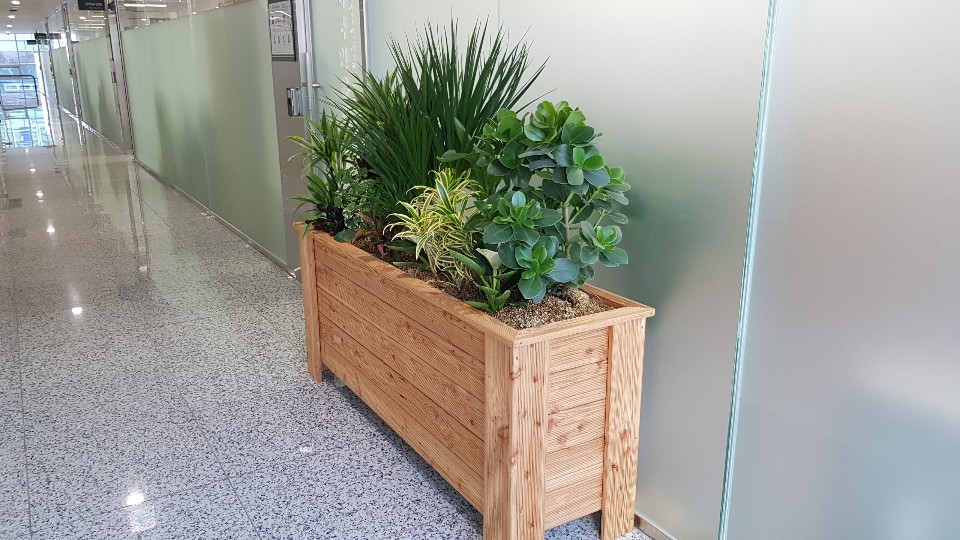 교육원 실내에 설치한 플랜트 조경입니다. 방수플레임을 사용하여 편리한 물주기와 물수위를 확인할수가 있어서 관리가 편리한 제품입니다.