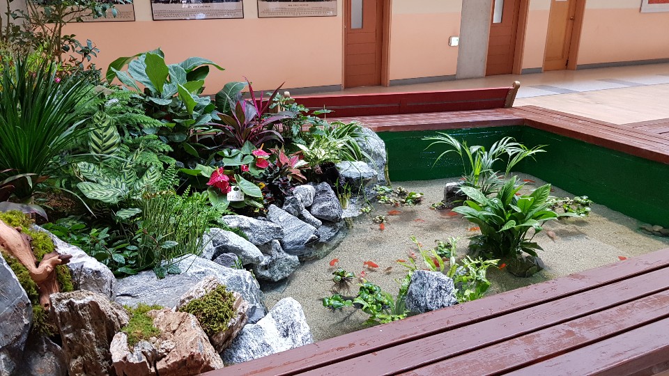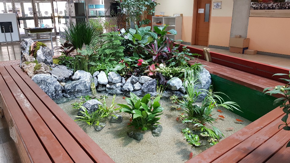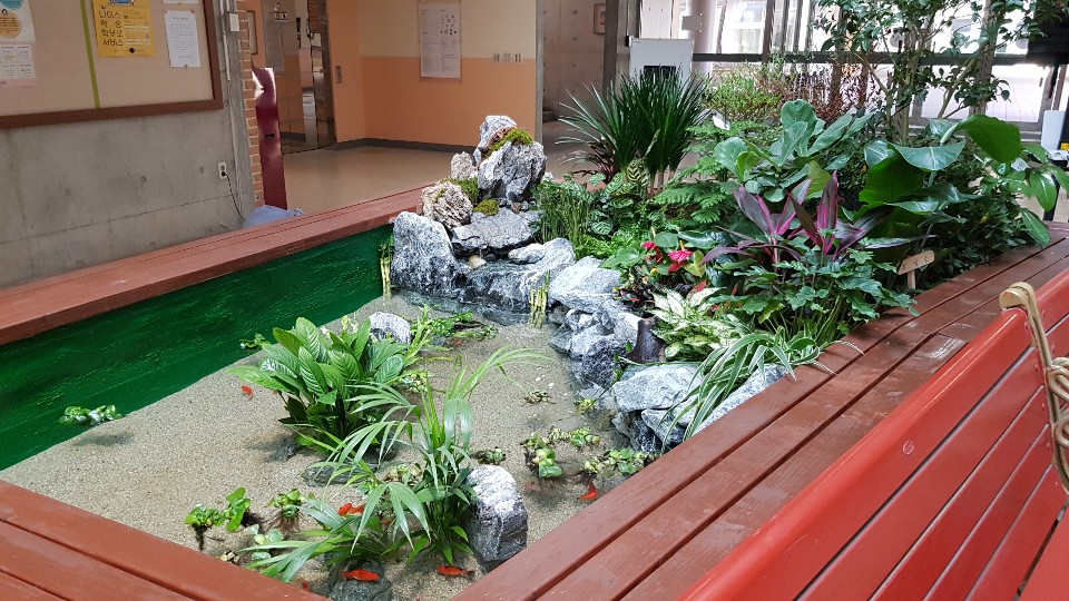 과학고등학교내에 생태연못조성을 통하여 자연의 정서를 생태조경을 조성하여 환경개선을 한 작업입니다. 물이정화되기 전이라서 물고기는 일주일후에 풀어놓았습니다. 연못물도 자연정화되기 때문에 줄어드는 수위만 조절해 주시면 됩니다.