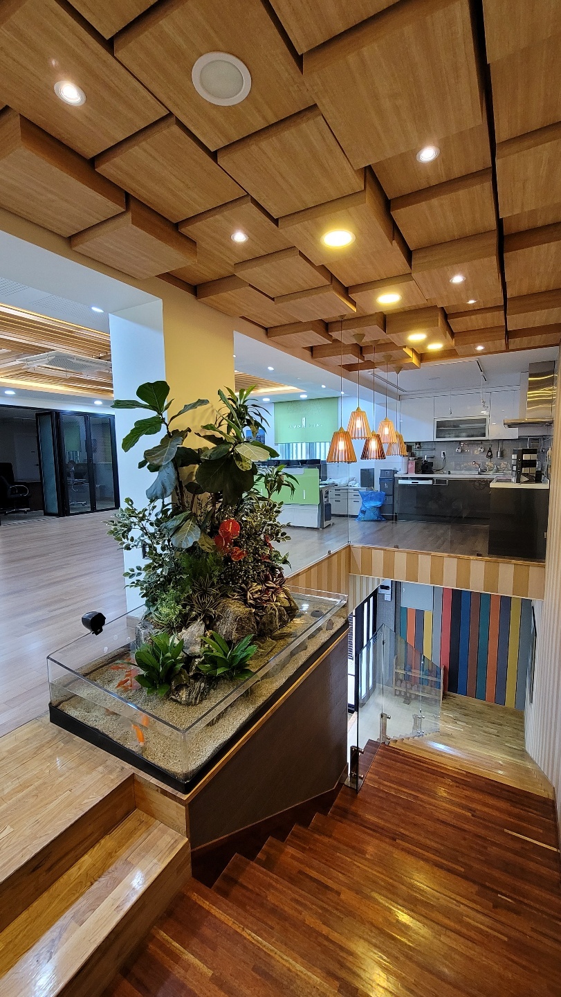 구의동 좋합목재상사 사무실 조화 생태조경입니다. 자연정화 기능으로 물관리가 편리하고 흐르는 물에의한 산소발생으로 물고기도 잘키울수 있어서 정서에 도움이 됩니다.