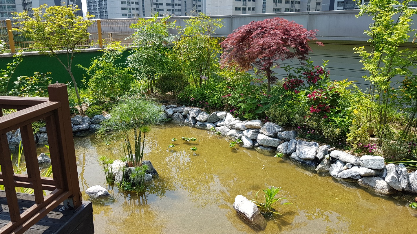 늡지로 조성된채 오랜시간동안 방치되어온 것을 생태연못조경으로 바꾸어 드린 작업입니다. 정화작업으로 물은 자연적으로 맑아지며 물고기와 각종 생물들의 삶의 터전이 되어 아이들의 좋은 자연학습장으로 되었습니다.