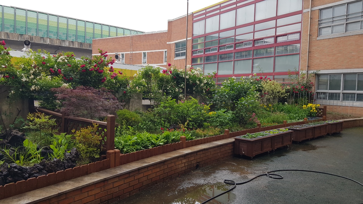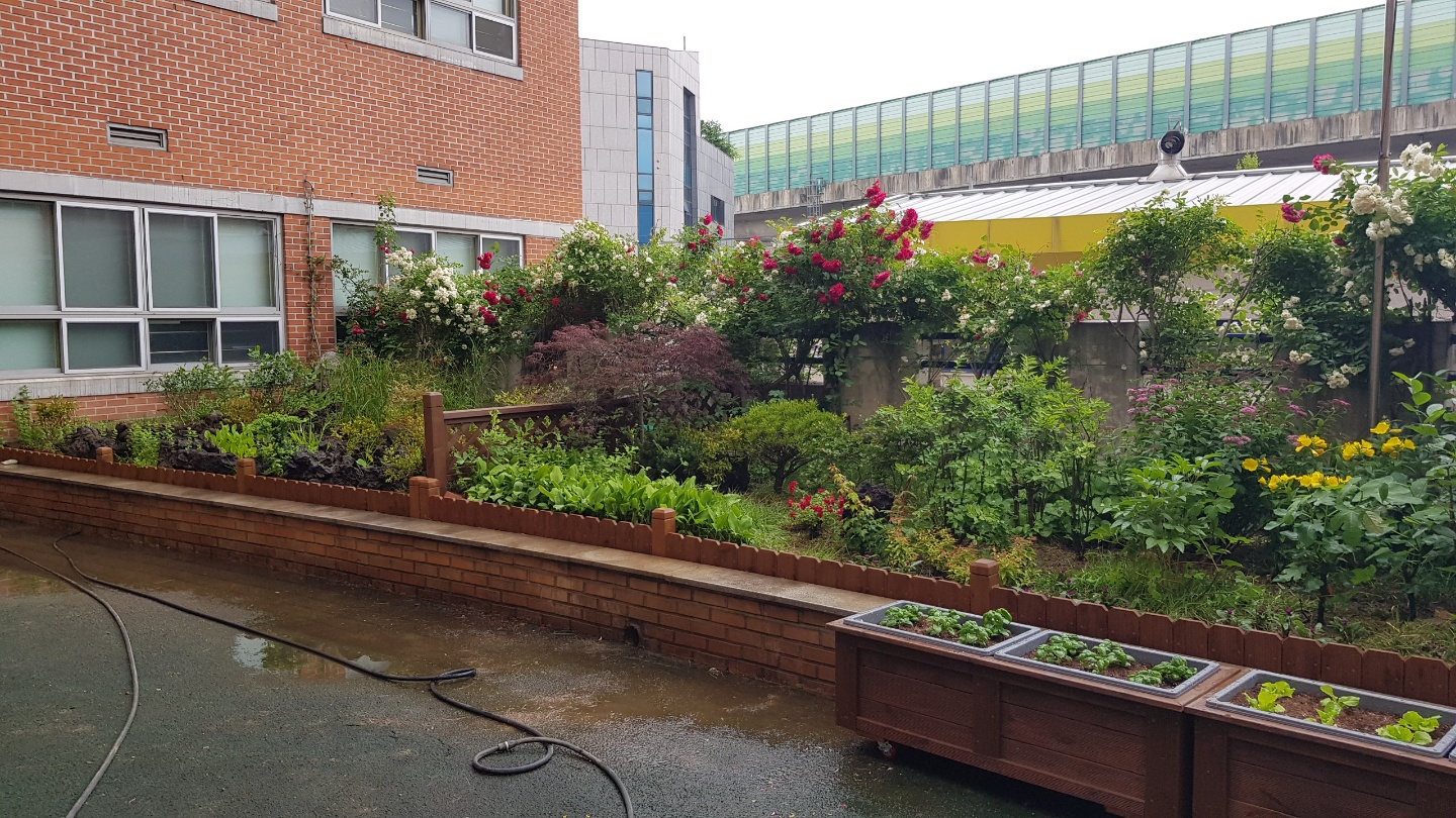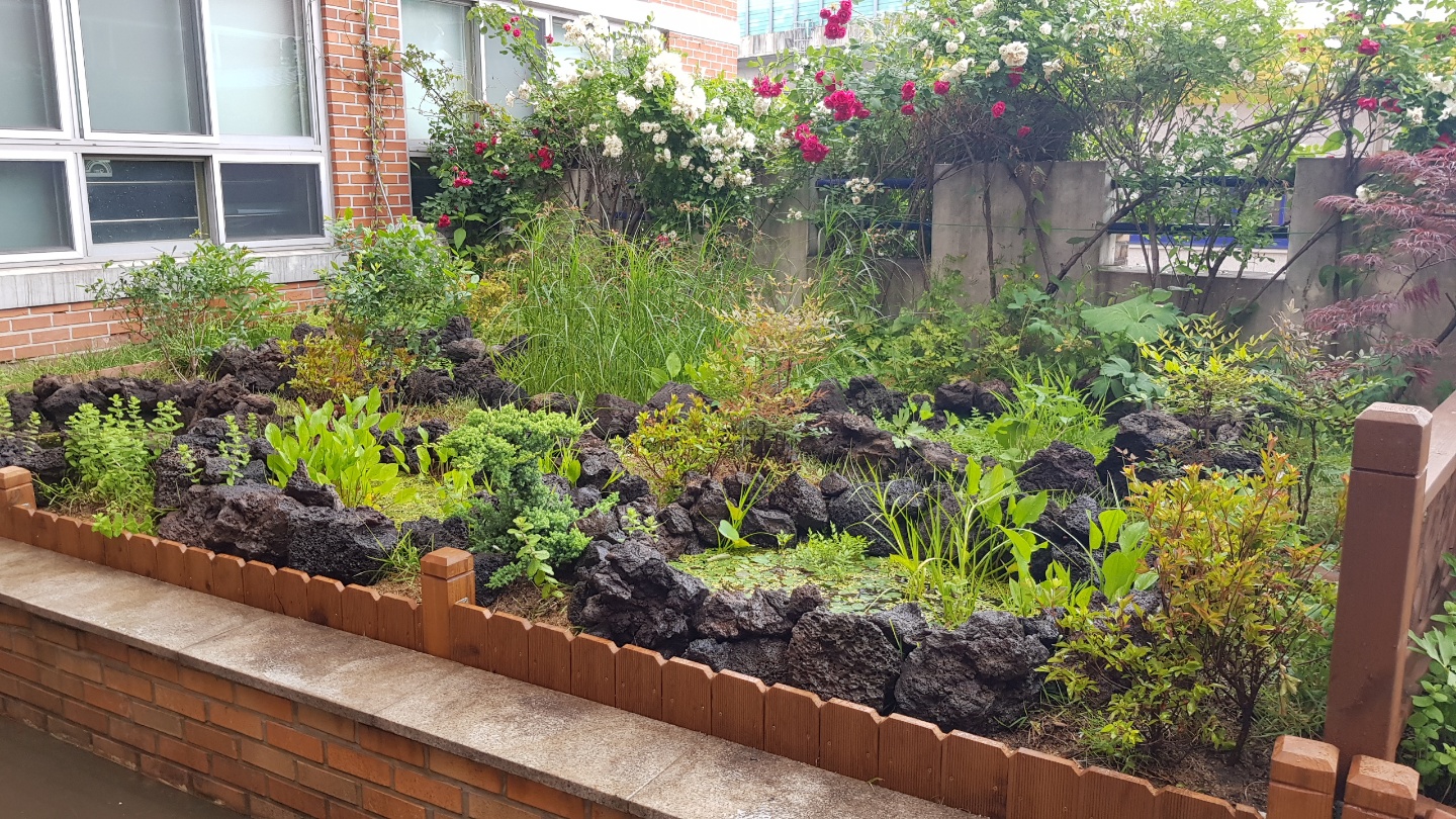 기존화단에 새롭게 꾸며본 실외화단조경입니다.