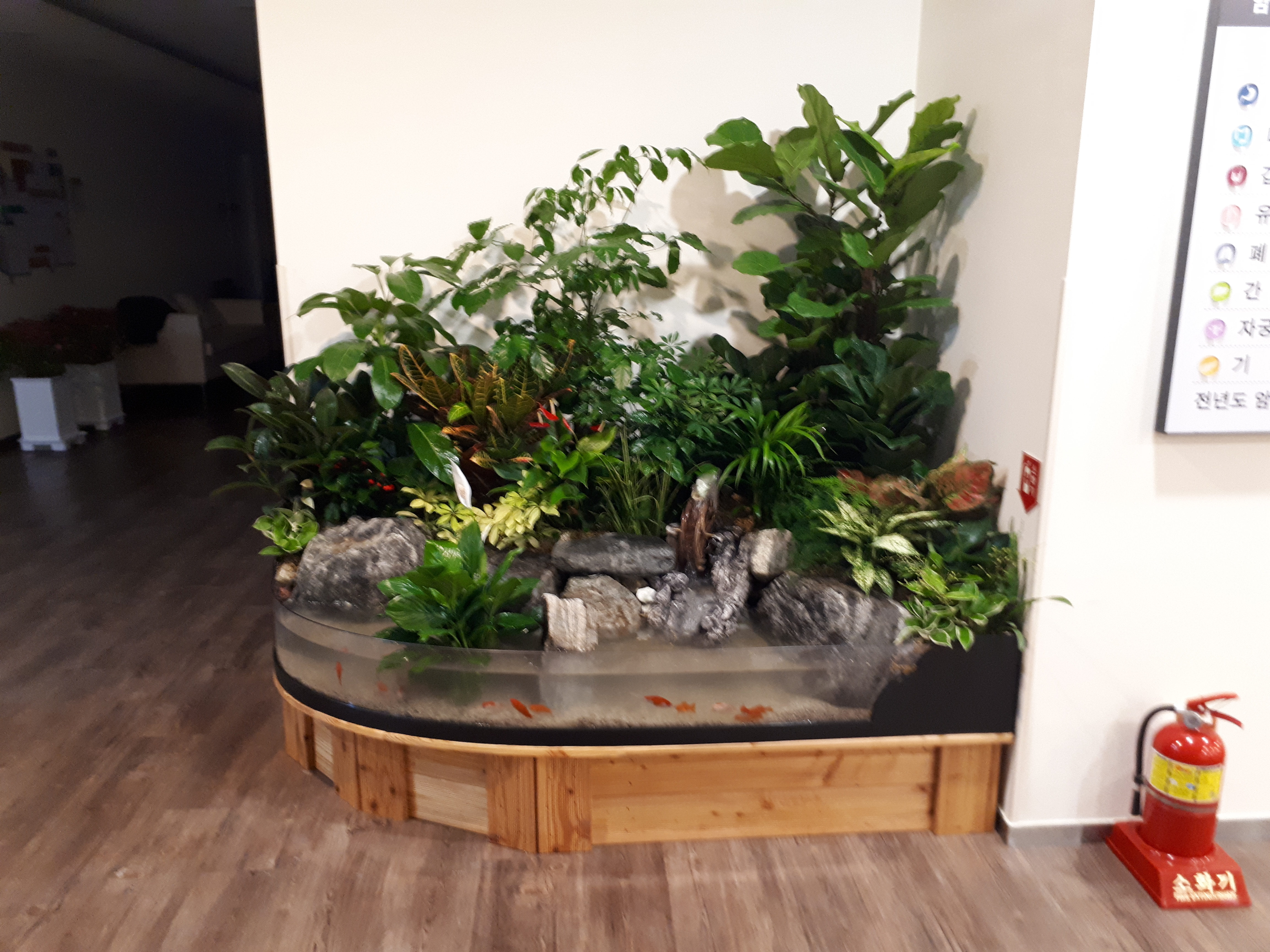 비효율적인 공간에 연출한 조경입니다. 코너형으로 제작 설치한 사례입니다.